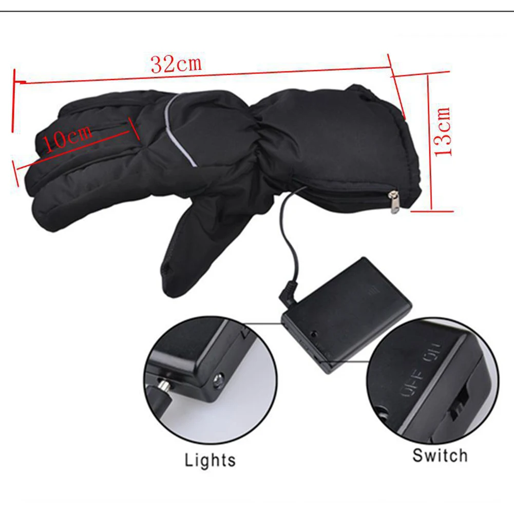 1 Pair Nylon Waterproof Heated Gloves Warming Battery Powered Motorcycle Hunting Winter Cycling Ski