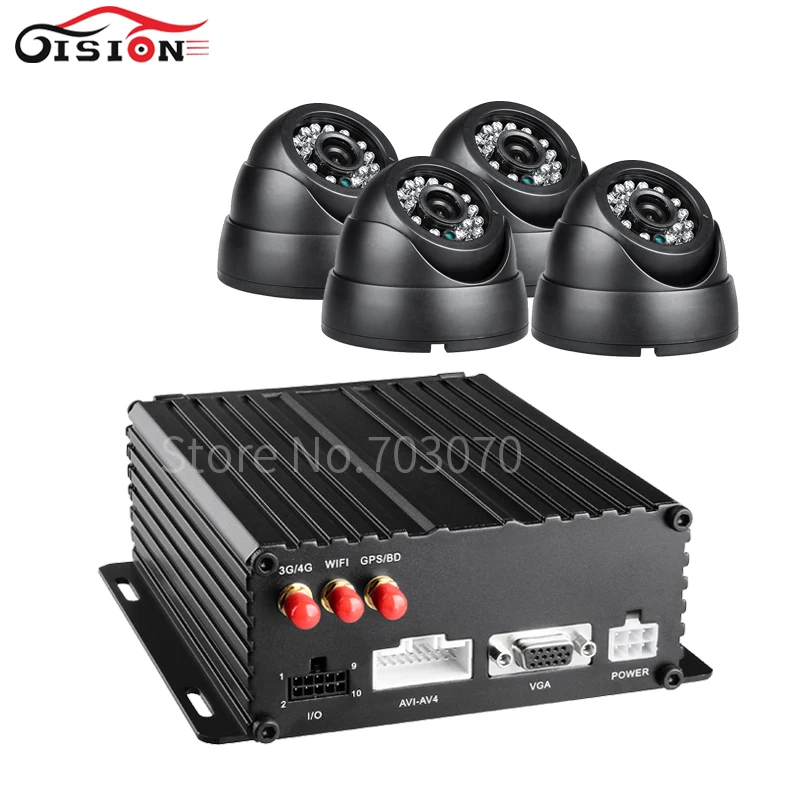 BEST 4G GPS WIFI 720P AHD 4CH MOBILE DVR KITS FREE SHIPPING 4PCS INDOOR VEHICLE CAMERA MDVR PC IOS ANDRO